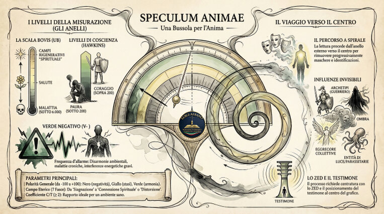 lo Speculum Animae, vorrei che lo consideraste non come un grafico da studiare, ma come un compagno di strada. Avete visto: ci sono anelli che parlano di energia positiva o negativa, scale che misurano la vitalità, mappe che raccontano la coscienza.E qualcuno potrebbe pensare: “Ma non sono troppi strumenti, troppe cose da ricordare?”. In realtà no. Immaginate di avere davanti un’orchestra: ci sono i violini, i fiati, le percussioni, ognuno con il suo linguaggio. Ma il direttore d’orchestra non li ascolta separati, li unisce in una sinfonia. Lo Speculum fa questo: prende voci diverse e le armonizza per mostrarvi il suono della vostra anima in questo preciso momento.